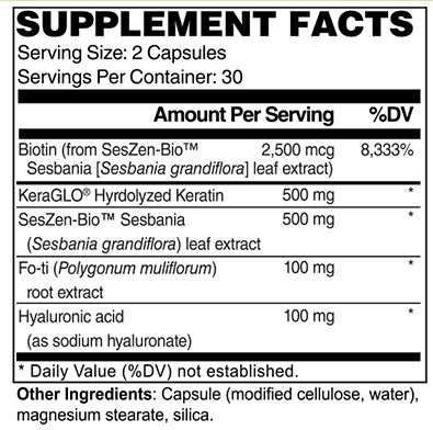 Beauty Care Advanced contains clinically studied trademarked ingredients to support healthy hair, skin and scalp such as SesZen-Bio™ plant-based biotin and KeraGLO® hydrolyzed keratin. Beauty Care Advanced also contains 100 mg each of Fo-ti extract and hyaluronic acid, making this a unique and innovative product for beauty care from the inside out.†