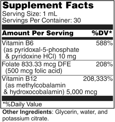 Methyl B-12 Drops is a dietary supplement that helps support energy as well as healthy blood and nerve cells. Methylcobalamin is the most active form of Vitamin B-12. Methyl B-12 Drops contains 5,000mcg of Vitamin B-12 (methylcobalamin) along with the active form of Vitamin B-6 and folate per 1 mL.