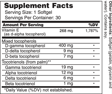 Vitamin E is a collective name for a group of eight different compounds. Several studies have been published that demonstrate the importance of consuming the entire family of vitamin E compounds, as they have specific biochemical and physiological effects that benefit the body. Perfect E features the complete family of vitamin E compounds. It also contains the patented Tocomin brand of tocotrienols; the most tested and recognized superior source of complete tocotrienols.