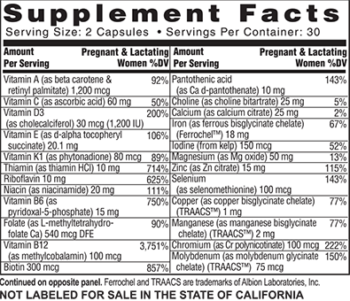 Prenatal Optimum compiles the most clinically relevant and nourishing nutrient profile for pre- and post-natal support with a focus on convenience and compliance with a two-capsule daily dosage. Prenatal Optimum is designed to support a healthy pregnancy and lactation by providing a comprehensive formula of vitamins and minerals including methylated B vitamins, lactobacillus and ginger.