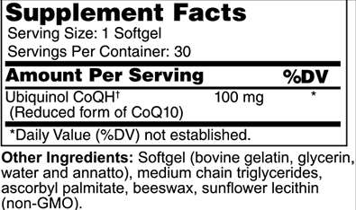 CoQ10 supplementation due to poor conversion of CoQ10 in the body. This formula supplies 100 mg of CoQ10.