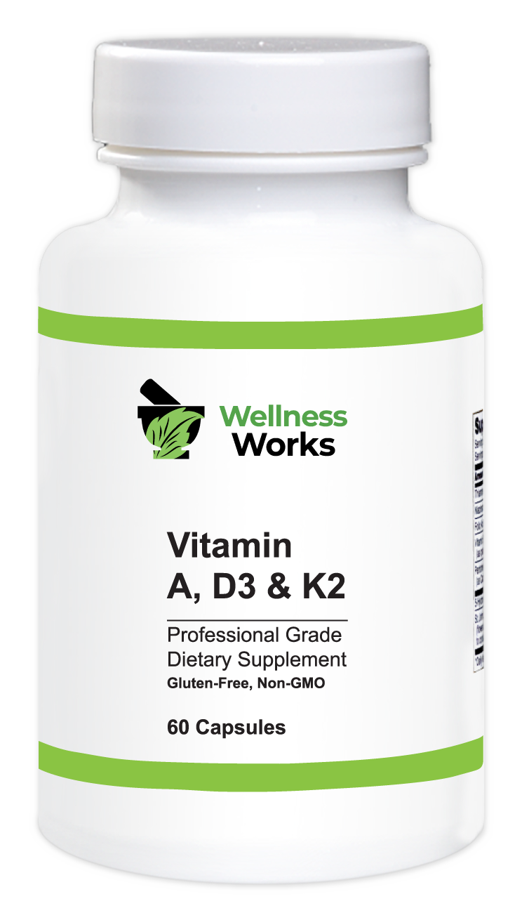 The synergistic combination found in Vitamin A, D3 & K2 Capsules helps to support bone structure, density, and integrity, proper bone remodeling, calcium utilization, and cardiovascular function.