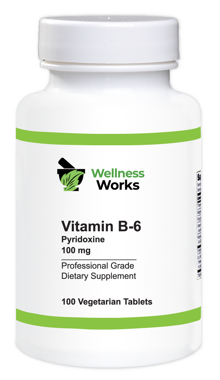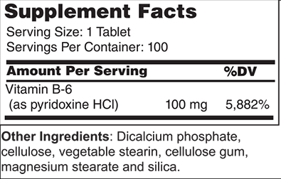 Vitamin B-6 is important in amino acid metabolism, hemoglobin formation, nerve impulse transmissions, and hormone synthesis. Vitamin B-6 supplies 100 mg of pyridoxine HCl in each tablet.